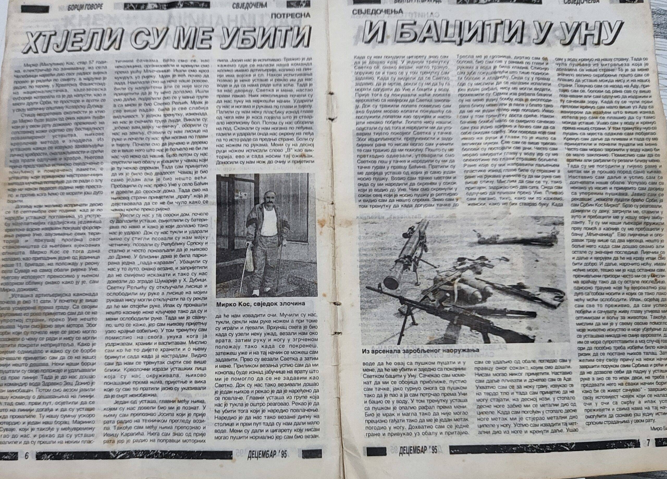 „Ja i Svetozar Reljić smo upali u zasjedu… prevezli su nas čamcem u selo Baćin, a potom u zgradu šumarije u Hrvatskoj Dubici. Tu su nas pretukli do nesvijesti.“