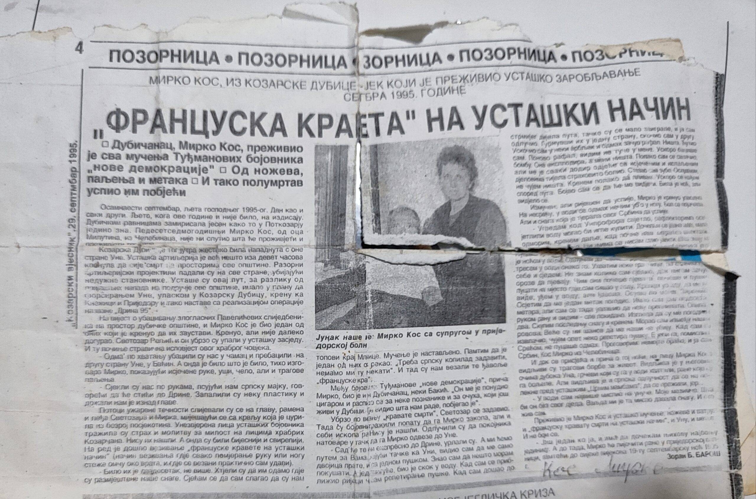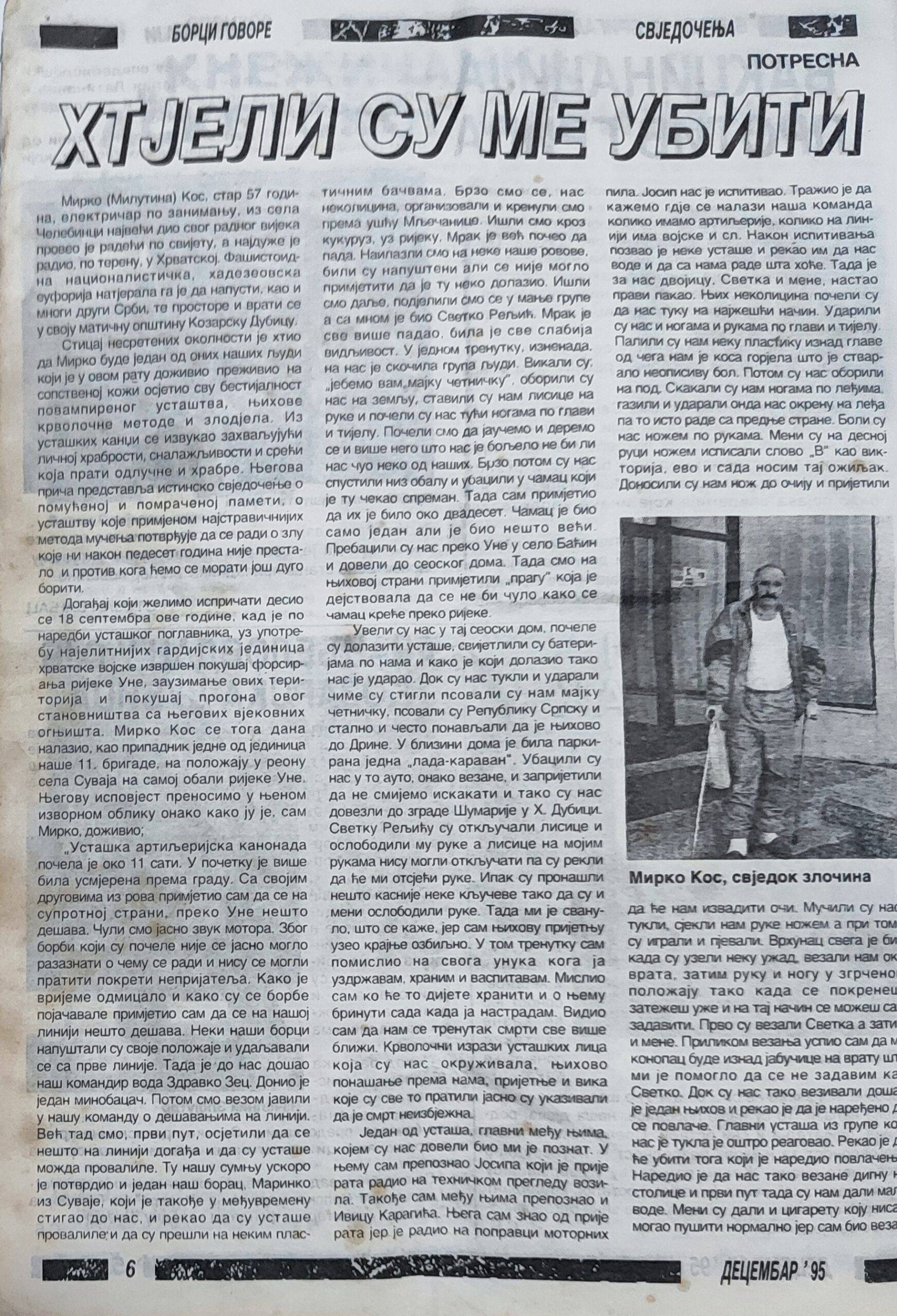 IZVOD IZ SVJEDOČENJA: MUČENJE I BIJEG MIRKA MILUTINOVOG KOSA