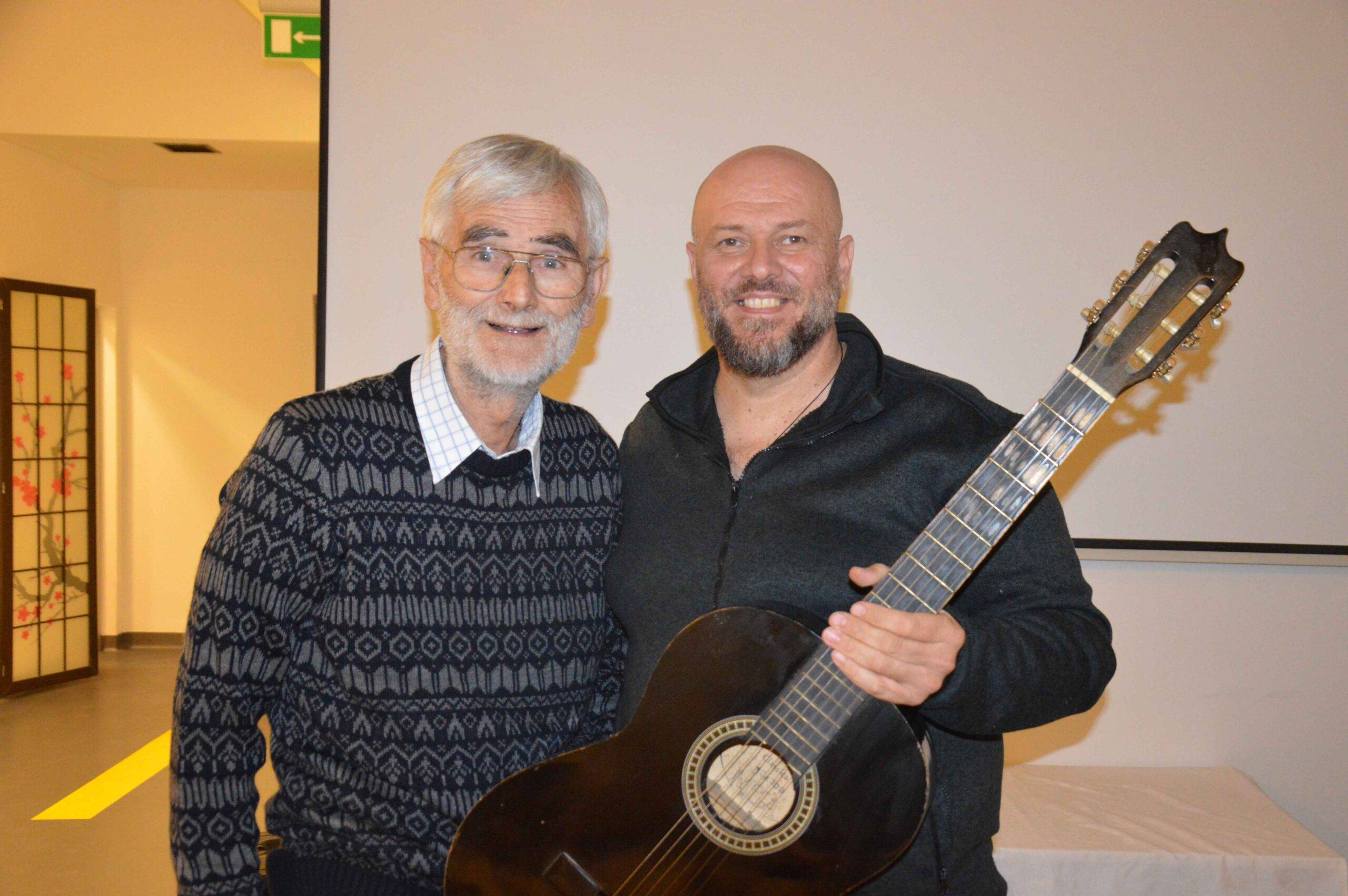 Да не заборавим, била је ту и гитара — обична, која је за сада шутила. Послије ће се она показати у свој својој (не)обичности међу прстима Мињиним. Прије него што ћемо ући на (за)казано мјесто одржавања вечери хумора и сатире, лијепо смо се (и)смијали и себи и Зорану, зезајући се у смислу: