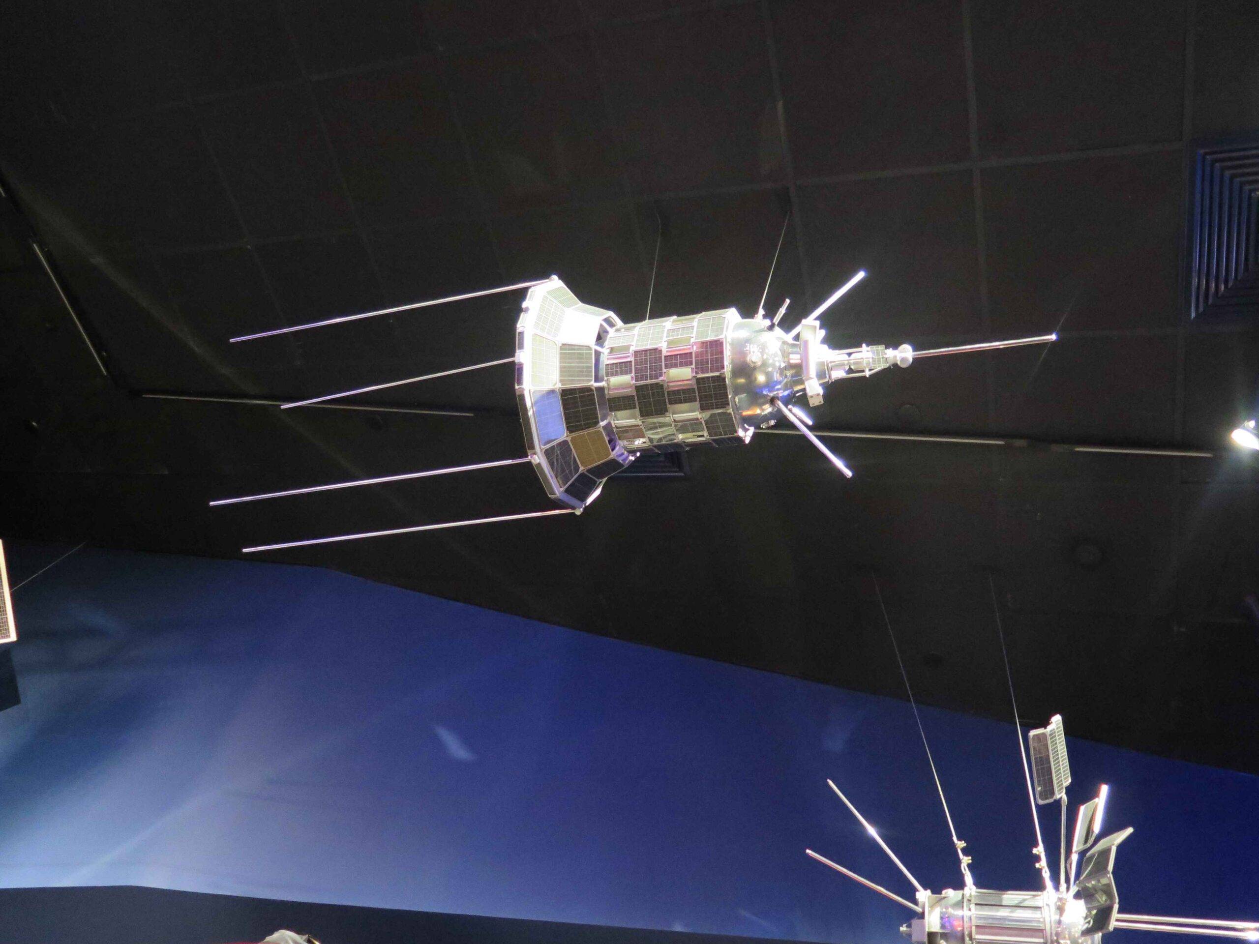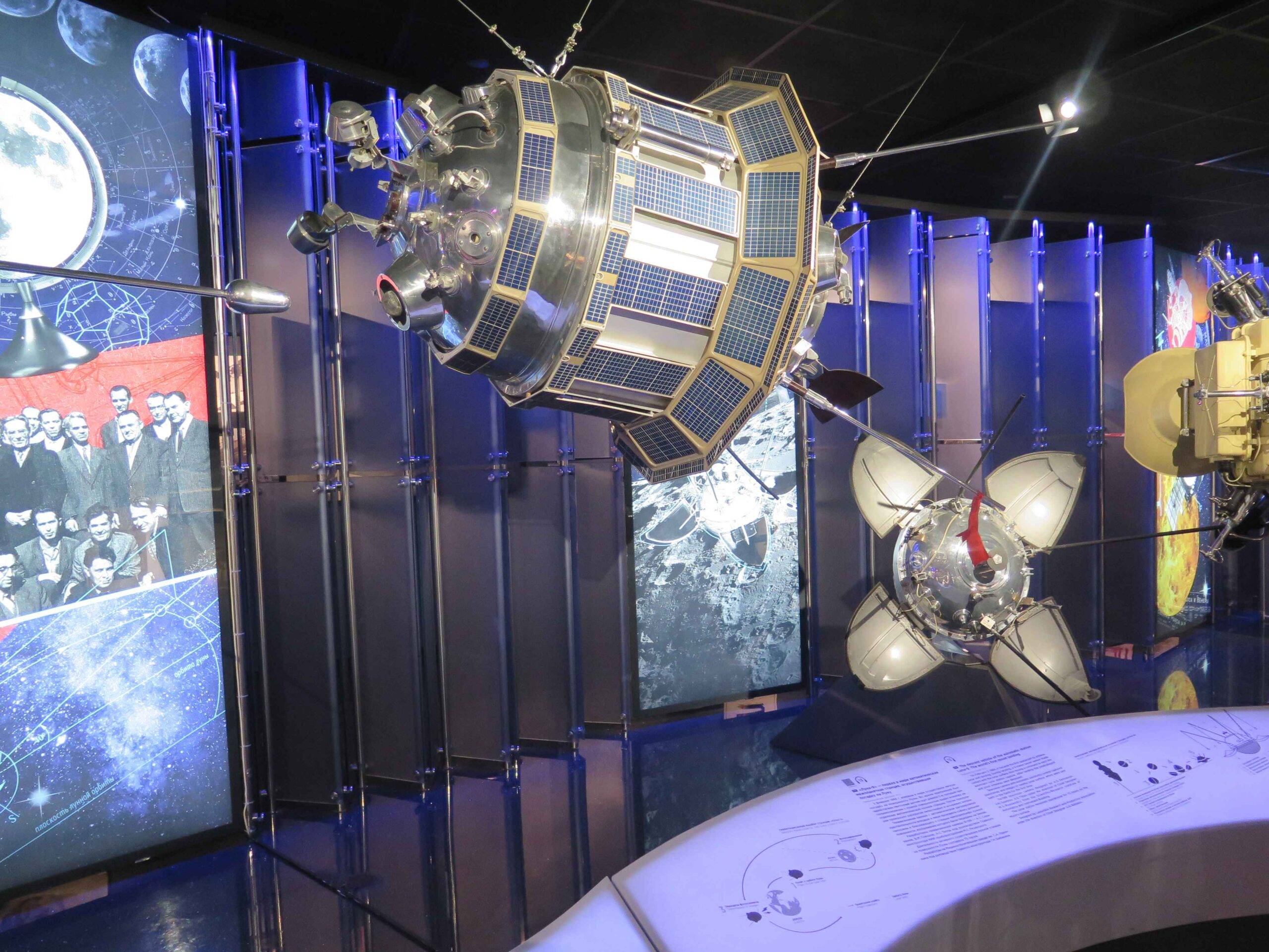 Istorija kosmonautikeOriginalni i replika predmeti sovjetske svemirske tehnologije, uključujući prototipove raketa i satelita. �